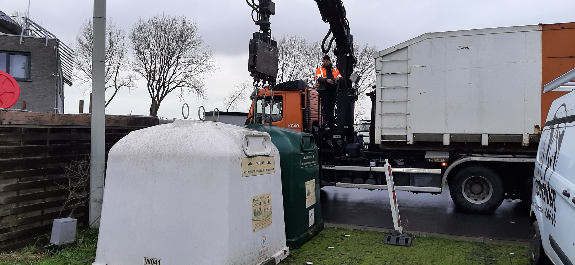 2023.12.05: Goed nieuws: de glascontainers werden vandaag vanaf de brug verplaatst naast het Westhoek Marina containerpark, waardoor restafval, papier & carton, PMD en glas thans op dezelfde site staan.
